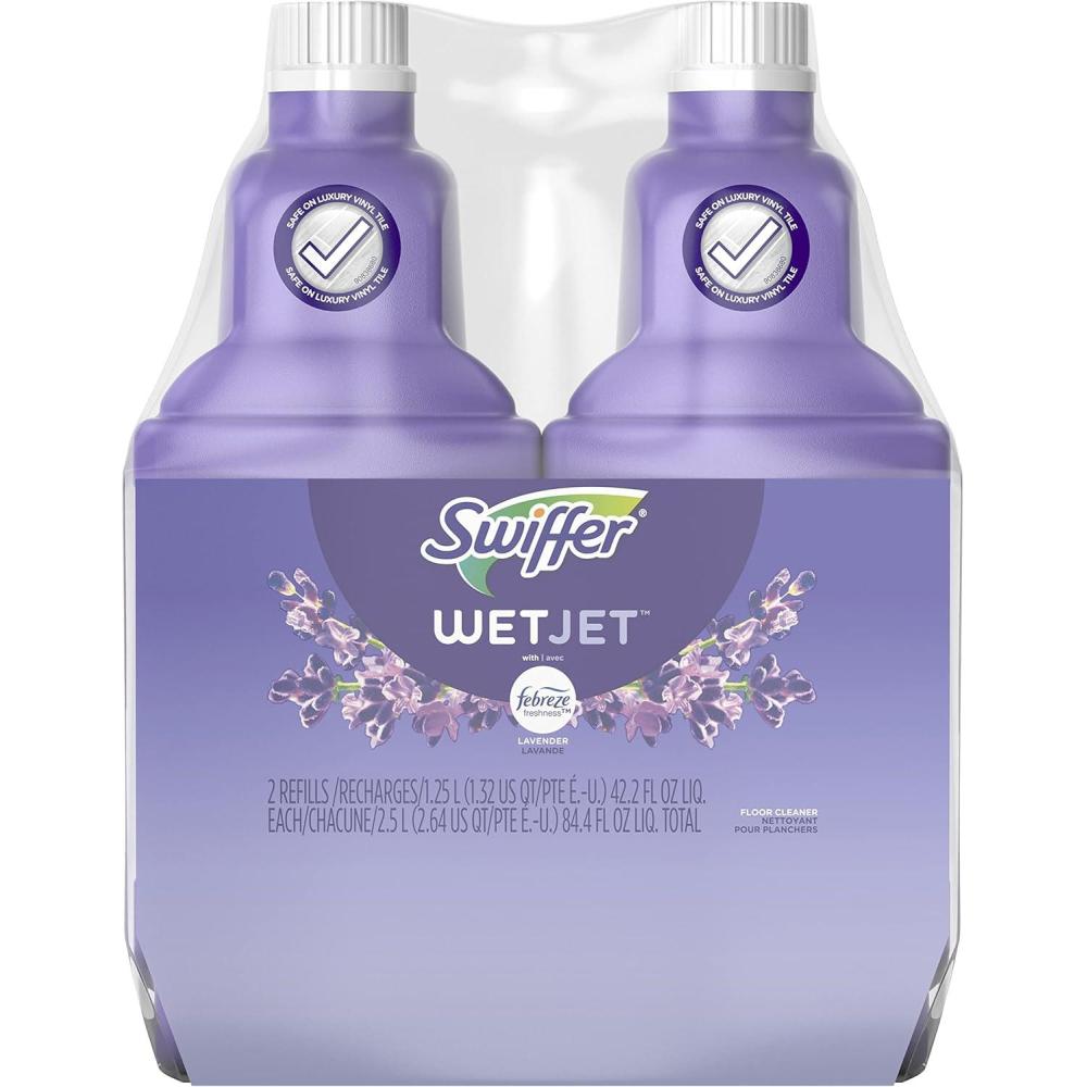 Swiffer WetJet Multi-Purpose Floor Cleaner Solution with Febreze Refill, Hardwood Floor Cleaner, Lavender Scent, 1.25 Liter -42.2 Fl Oz (Pack of 2)(Lavender)
